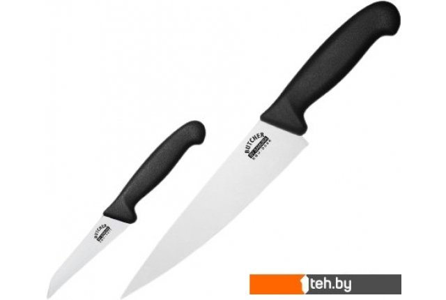 | Информация | Первый "маленький нож" будет незаменим при работе с овощами и фруктами. Овощной нож легко снимет с них кожуру или порежет на небольшие кусочки, с лёгкостью справится с удалением "глазков" и прочих изъянов поверхности из картошки. Им удобно орудовать – маленький, аккуратный нож прекрасно сидит в руке. А Шеф с лёгкостью выполнит всю остальную работу – порубит, нарежет, нашинкует любой продукт, каких бы размеров он ни был. Шефу по плечу и арбуз, и капуста, и солидный кусок мяса. |