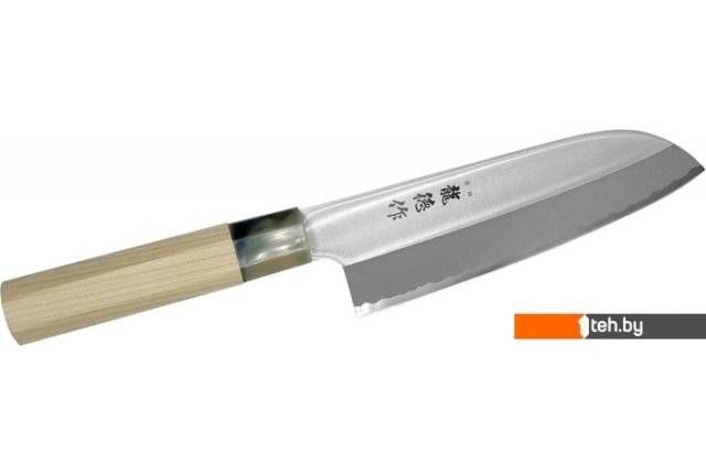 | Информация | Нож Сантоку — универсальный японский нож. Santoku в переводе означает три добродетели: мясо, рыба и овощи. Этот нож подходит для работы в домашних условиях, для самых разнообразных манипуляций на кухне. Им можно чистить, нарезать, шинковать любые продукты и при этом получать несравнимое удовольствие. Ведь он создан с учётом эргономики и требований кулинаров к удобству и качеству инструмента. Эргономичная рукоятка, широкое лезвие из стали, неприхотливость в уходе делают этот тип ножа одним из самых востребованных среди непрофессионалов. Купить японский нож Сантоку стоит всем, кто любит готовить дома. На профессиональной кухне он тоже будет кстати. |