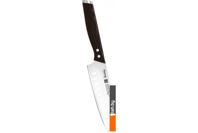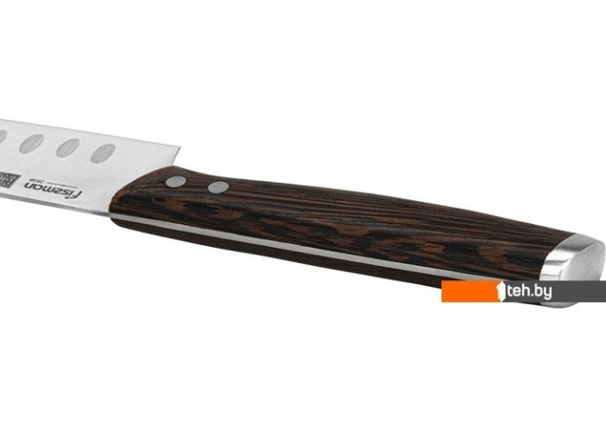 | Информация | ? Нож Сантоку - универсальный инструмент для кухни. Он предназначен для шинковки овощей, нарезки мяса и рыбы. Углубления на поверхности облегчают использование, предотвращая налипание продуктов на лезвие. Кухонные ножи серии Ferdinand изготовлены из высококачественной немецкой стали X50Cr15MoV, обладают повышенной прочностью и подходят для частого использования. Лезвия имеют двухстороннюю симметричную заточку по всей длине, обеспечивая легкую нарезку и разделку. Рукоятки из натурального африканского дерева Wenge имеют элегантную форму и обеспечивают надежный захват. Ножи безупречно сбалансированы и удобно лежат в руке благодаря особой технологии изготовления. |