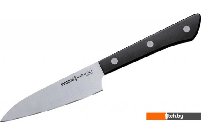 | Информация | Самым маленьким кухонным ножом считается овощной. Его размеры считаются наиболее подходящими для очистки и нарезки фруктов или овощей для салатов, супа или рагу. Небольшой клинок аккуратно и тонко срежет кожуру, а острие поможет избавиться от "глазков" и других дефектов.Клинок овощного ножа Samura Harakiri изготовлен из специализированной ножевой японской стали AUS-8, легированной ванадием, молибденом и т.д. Первоклассная сталь обеспечивает антикоррозионные свойства, а также отличные эксплуатационные и рабочие характеристики ножа. |