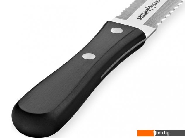 | Информация | Нож для замороженных продуктов Samura Harakiri представляет собой кухонную принадлежность с двухсторонней серрейторной заточкой.На каждой из сторон зубчики имеют свой размер и конфигурацию.Одна из них используется специально для работы с заморозкой или разделки очень твердых продуктов (например, тыквы). Большинству хороших и качественных кухонных ножей такие действия противопоказаны.Вторая сторона оптимальна для нарезки различной выпечки. Её зубчики эффективно преодолевают твердую хрустящую корочку, но не мнут и не крошат пышную середину. |