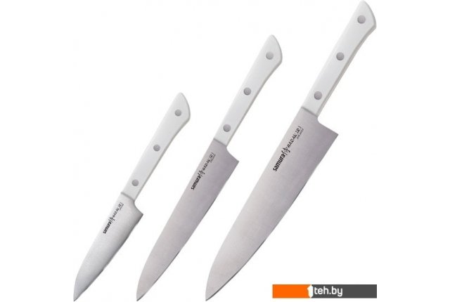 | Комплектация | SHR-0011W - НОЖ ОВОЩНОЙ 99 MM / 4’’SHR-0023W - НОЖ УНИВЕРСАЛЬНЫЙ 150 MM / 6’’SHR-0085W - НОЖ ШЕФ 208 mm / 8.2’’ |
