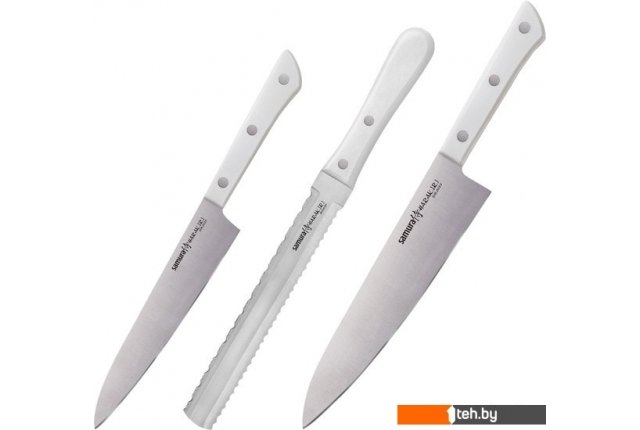 | Комплектация | SHR-0023W - НОЖ УНИВЕРСАЛЬНЫЙ 150 MM / 6"SHR-0057W - НОЖ-СЕРРЕЙТОР ДЛЯ ХЛЕБА И ЗАМОРОЖЕННЫХПРОДУКТОВ 180 MM / 7.1”SHR-0085W - НОЖ ШЕФ 208 mm / 8.2’’ |