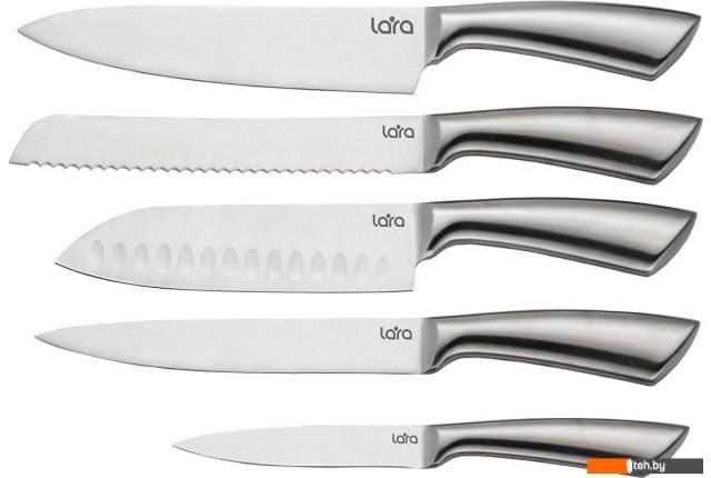 | Информация | Набор ножей LR05-66 из прочной нержавеющей стали 5 в одном, имеют идеальное распределение веса и баланса благодаря точно спроектированной форме. Для удобства и защиты ножи оснащены больстером. Эргономичная форма рукояти позволяет минимизировать усталость рук в процессе работы. В комплекте: шеф-нож, нож для нарезки хлеба, универсальный нож, нож для нарезки, нож азиатского типа сантоку, который отличается особой формой лезвия и остротой заточки. |