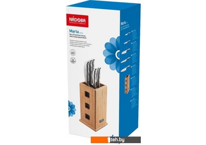 | Комплектация | нож для овощей - 9 смнож универсальный - 12.5 смнож сантоку - 17.5 смнож разделочный - 20 смнож поварской - 20 см универсальный блок-подставка |