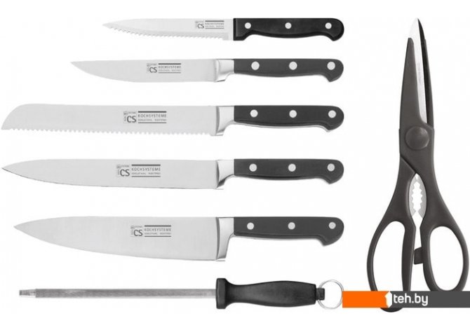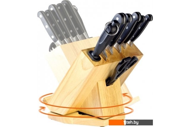 | Комплектация | нож для очистки 9 см томатный нож 13 см разделочный нож 20 см хлебный нож 20 см нож шеф-повара 20 см универсальные ножницы заточка стали блок для ножей |
