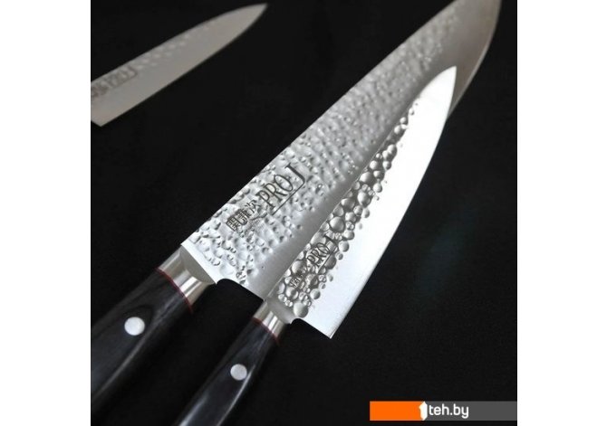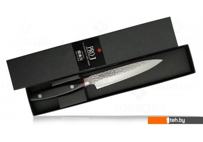 | Информация | Японский шеф нож Kanetsugu Pro J обладает особым лезвием, которое изготавливается по специальной трёхслойной технологии. В середине расположен режущий слой из лучшей ножевой стали VG10. Ещё одна отличительная особенность линейки — рукоять. Она выполнена из коррозионностойкой стали, которую обрамляют защитные накладки из эко-древесины. Все модели имеют достаточно тяжёлый вес, а значит, владелец должен быть наделён поварскими навыками, чтобы уметь обращаться с таким инструментом. Не рекомендуем мыть в посудомоечной машине. |