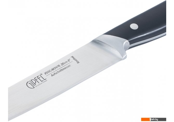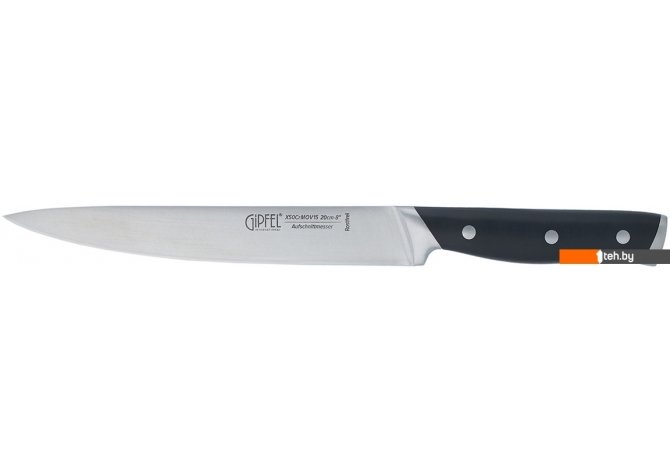 | Информация | - Нож Gipfel Rigel 52153 имеет стальное лезвие, которое сохраняет остроту на длительное время. - Нож не впитывает и не оставляет запаха, не окисляет и не разрушает витамины в нарезаемом продукте. - Ручка удобной формы изготовлена из высококачественного пластика. - Эргономичная форма рукояти позволяет работать ножом в течение долгого времени. - Разделочным ножом легко шинковать овощи и зелень, резать мясо, рыбу и птицу на порционные кусочки. - Рекомендации по использованию и уходу: - Мойте нож сразу же после использования. - Рекомендуется мыть нож вручную. - Не оставляйте нож в воде надолго. - Вытирайте нож насухо сразу после мытья. - Храните нож в специальной подставке, футляре или ящике отдельно от других приборов. - При нарезании используйте деревянные или пластиковые разделочные доски. - Время от времени нож требует затачивания. |