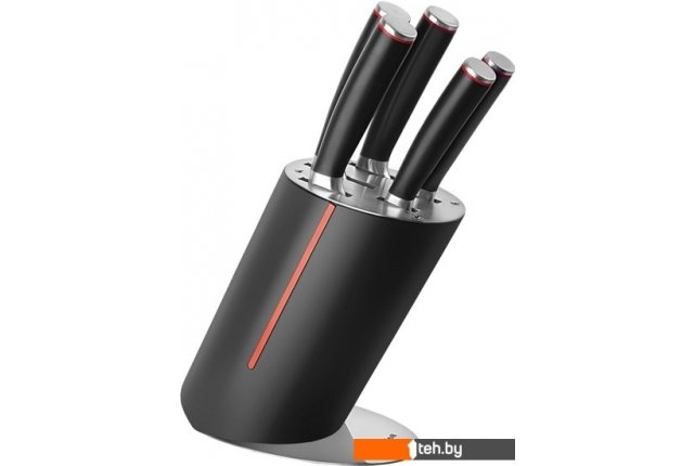 | Комплектация | Нож поварской 20 см.Нож для хлеба 20 см.Нож разделочный 20 см.Нож универсальный 12.7 см.Нож для овощей 8.9 см.Подставка. |