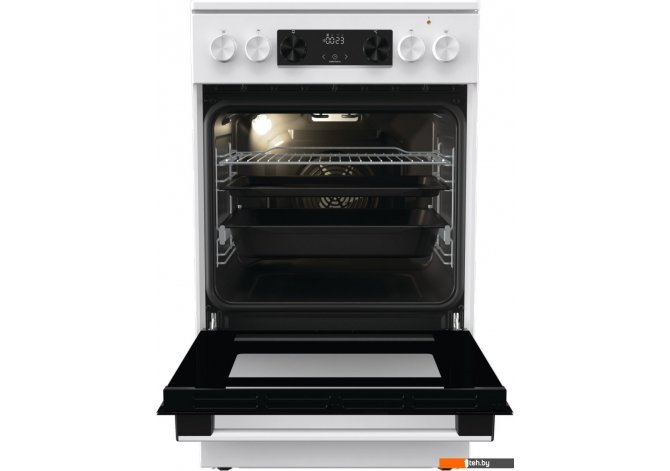 Информация | ? Электрическая плита Gorenje GEC5C42WG обеспечивает широкие возможности для комфортного и качественного приготовления различных блюд. ? Она оборудована стеклокерамической варочной поверхностью с 4-мя конфорками разного диаметра и духовым шкафом объемом 70 л. ? Система конвекции с принудительной циркуляцией нагретого воздуха обеспечивает профессиональные условия для приготовления на одном или нескольких уровнях. ? Функционал духового шкафа дополнен режимами «Пицца», «Быстрый разогрев», «Гриль», «Размораживание». ?? Сенсорный программатор IconLED позволяет простым касанием выбирать и контролировать параметры приготовления. ? Также в плите реализованы механические поворотные регуляторы. ? Гидролизная система очистки и специальное многослойное покрытие облегчают уход. ? Из особенностей Gorenje GEC5C42WG отмечаются подсветка, телескопические направляющие, двойное стекло. ? В комплекте поставляются 2 противня и решетка. |