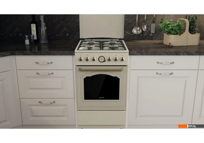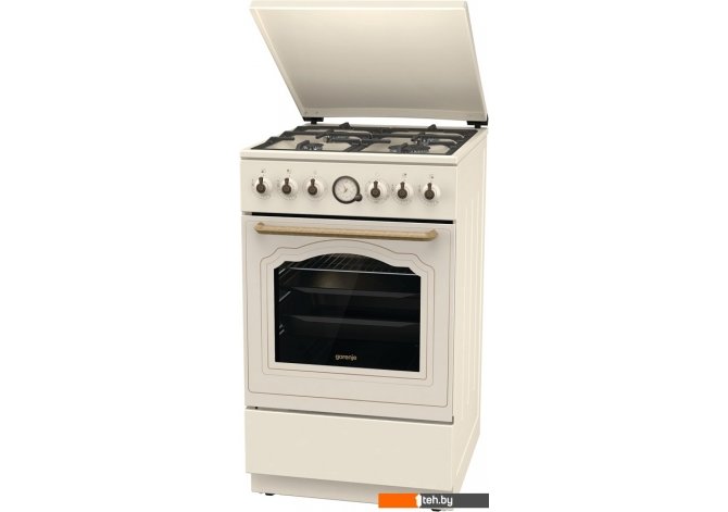 Информация | ? Газовая плита Gorenje GGI5BCLI в бежевом корпусе с аккуратной рамкой на дверце духовки и красивыми переключателями преображает интерьер кухни. ? Прочные чугунные решетки обеспечивают устойчивость посуды при готовке на любой из 4 конфорок. ? Духовой шкаф на 67 л со сводчатым потолком прогревается быстро и равномерно, что важно для вкусовых качеств блюда. ? Съемные направляющие упрощают очистку гриля и внутренних стенок духовки от жира и остатков пищи. ? На передней панели Gorenje GGI5BCLI установлены удобные переключатели и механический таймер с часами. ? По окончании заданного времени срабатывает звуковой сигнал. ? Поворотные механизмы со встроенным электроподжигом позволяют легко разбираться в настройках благодаря интуитивно понятным символам. ? Отдельный рычаг предусмотрен для активации подсветки духовки. ? Плита дополнена металлической крышкой для варочной поверхности и ящиком для посуды. |