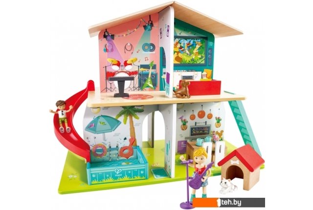 | Комплектация | кровать (двухъярусная), стул, ванна, унитаз, диван, пианино, ковер (3 шт.), качели, собака, посуда (3 шт.), бассейн, будка, гитара (с микрофоном), лестница, стол, еда/напитки, горка (2 шт.), питомец (кошка), фигурка человечка (2 шт.) |