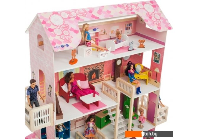 | Информация | - Фасады деревянного кукольного домика "Нежность" окрашены в нежный розовый цвет. Крыши дома и гаража при этом имеют более насыщенный розовый оттенок. Это классическое для девичьей игрушки цветовое решение сразу передает домику ауру нежности и трогательности. Крышу дома и козырек гаража украшает рисованная черипица. На крыше домика также нежные цветочные орнаменты.- Внутренний декор контрастирует с фасадами разноцветной мебелью, придавая домику яркости и задора.- В доме 4 этажа, 7 просторных комнат, 2 балкона и гараж для кукольного транспорта.- На первом этаже гараж, в котором можно припарковать Барби-авто или любой другой игрушечный транспорт (велосипед, мопед и даже моторную лодку). Помещение гаража можно использовать и не по прямому назначению, например, в качестве закрытой кладовой, ведь и у кукол бывает слишком много одежды, обуви, сумочек и пр. Большие двери гаража легко открываются. При этом из гаража предусмотрен еще и сквозной проход для куклы в жилую часть дома, где располагаются ванная и спальня для кукол.На втором этаже – гардеробная и кухня. На третьем – гостиная и уголок красоты Барби. На четвертом, мансардном, этаже – уютная детская комната.- Между этажами куклы перемещаются по лестницам с приятным бархатистым покрытием (лестницы отделаны премиальным материалом – флоком белого цвета). Это неординарное решение дизайнеров PAREMO придает домику ощущение уюта и респектабельности одновременно.- На уровне 2-го и 3-го этажей расположены большие балконы. |
