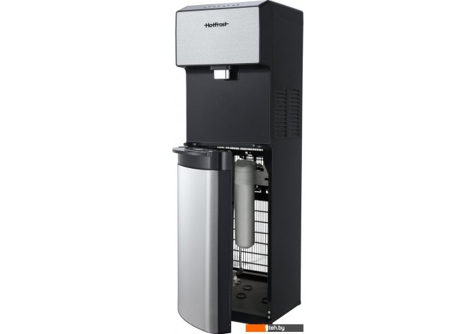 | Информация | - 1. Санобработка (дезинфекция) пурифайера. - В пурифайере установлена система ультрафиолетовой обработки ёмкости (бака), где накапливается очищенная фильтрами вода. Санобработка бака чистой воды пурифайера происходит в автоматическом режиме без участия человека. Кварцевый бактерицидный светодиод ультрафиолетового спектра излучения (пиковая длина волны 275 нанометров) автоматически включается при подключении пурифайера в электросеть, светит 40 минут и затем отключается на 140 минут. Далее снова включается на 40 минут и продолжает работу по циклу, описанному выше. - Таким образом, бактерии, которые по какой-либо причине могли оказаться в воде, уничтожаются ультрафиолетом. - 2. Многоступенчатая очистка водопроводной воды. - Пурифайер HotFrost V450 PUFSM поможет превратить водопроводную воду в питьевую с помощью 4-х ступеней очистки. А функции нагрева и охлаждения, как у традиционного кулера, сделают быт проще и уютнее. - Первая ступень очистки обеспечивается осадочным фильтром, устраняющим песок, ржавчину и другие взвеси; вторая ступень очистки обеспечивается угольным фильтром, устраняющим из воды свободный хлор, запах, органические соединения; третья ступень очистки обеспечивается угольным постфильтром, устраняющим возможный посторонний привкус и улучшающим вкус воды; четвёртая ступень очистки происходит с помощью ультрафильтрационной мембраны, удаляющей бактерии, вирусы и ультрамелкие частицы загрязнений. - Фильтры входят в комплектацию аппарата. - 3. Современная эргономика и дизайн пурифайера. - Панель управления функциями пурифайера выполнена из высококачественного акрила с текстурой нержавеющей стали. Угол наклона панели удобен как для визуального обзора управляющих элементов, так и для контакта с ними. - В данной модели пурифайера ушли в прошлое механические кнопки подачи воды. Управление пурифайером происходит через сенсорные (электронные) кнопки, имеющие соответствующую цветовую индикацию, упрощающую понимание, какая функция в пурифайере активирована. - В пурифайере имеется защита от детей на срабатывание функции набора (слива) горячей воды. Стоит отметить современную реализацию данной функции, не просто через механическую блокировку, а посредством запрограммированной задержки нажатия в 3 секунды на кнопку разблокировки подачи горячей воды. - Т.к. в пурифайере фильтрам требуются периодическая замена, то для визуального контроля сроков их замены на панели управления имеется индикатор ресурса фильтров. - 4. Защита от протечек. - Пурифайер снабжён защитой от протечек. Датчик (плата) обнаружения протечки воды помещен на дно корпуса пурифайера. Если произойдёт протечка и электроды датчика окажутся залитыми водой в течение 10 сек., то на основную плату управления подаётся сигнал, вызывающий срабатывание электромагнитного клапана, отключающего подачу воды в систему. О сработавшей защите начнут извещать мигающие индикаторы сигнализации протечки. - 5. Удалённость пурифайера от точки подключения. - Использование пурифайера предполагает подключение к водопроводу. Обычно удалённость пурифайера от точки подключения к водопроводу (без потери производительности) может достигать 100 метров. Но это расстояние можно и увеличить. В этом случае нужно учитывать давление воды в водопроводе и при низком давлении устанавли