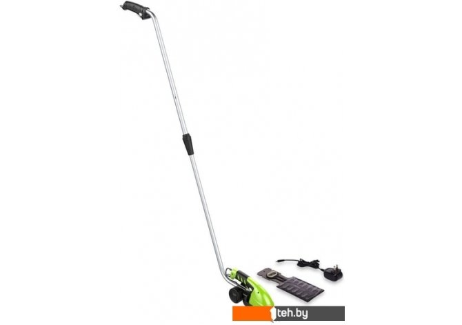 | Комплектация | - Ножницы аккумуляторные Greenworks 3,6V;- Лезвие для травы с чехлом;- Лезвие-кусторез с чехлом;- Штанга-удлинитель;- Зарядное устройство;- Руководство по эксплуатации;- Гарантийный талон. |