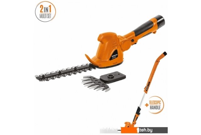 | Комплектация | - Садовые ножницы; - Насадка кусторез; - Телескопическая штанга; - Аккумулятор 2,0 Ач - 1 шт; - Зарядное устройство; - Инструкция; - Коробка. |