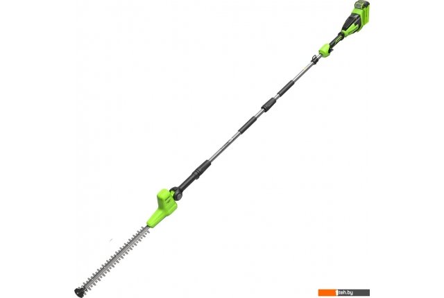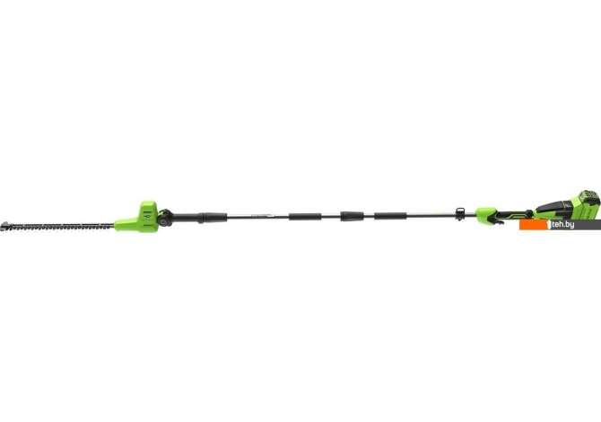 | Информация | - Аккумуляторный кусторез Greenworks 40В G40PH511 (арт. 2302007) – универсальный инструмент для ухода за кустарниками, декоративными растениями и живой изгородью, особенно если она достаточно высокая или длинная. Благодаря длине устройства в 272 см и поворотной режущей головке, кусторез позволяет работать на высоте, не прибегая к использованию лестницы. - Преимущества модели: - Стальные лезвия с лазерной обработкой: Высококачественные стальные лезвия с двухсторонней алмазной заточкой обеспечивают чистый и аккуратный рез, что сохраняет здоровье растений. - Гибкость в работе: Регулируемое поворотное режущее лезвие с углом поворота 122° и 6 фиксируемыми положениями делает работу удобной в любых условиях, даже при подрезке сложных участков. - Длина кустореза – 272 см: Длинная составная штанга из 3-х секций позволяет легко дотягиваться до верхушек деревьев или высоких участков живой изгороди без необходимости использовать стремянку или лестницу. Полная длина устройства 181 см (две секции), 272 см (три секции). - Безопасность: Предохранитель от случайного включения и удобная эргономичная рукоятка гарантируют безопасное использование инструмента. - Свобода передвижения: Беспроводная работа от аккумулятора 40V дает возможность свободно перемещаться по участку, не привязываясь к розетке и удлинителям. - Кусторез Greenworks 40V G40PH511 работает на самых популярных аккумуляторах серии 40V, которые совместимы с более чем 50 другими устройствами Greenworks. - Внимание! Этот комплект поставляется без аккумуляторной батареи (АКБ) и зарядного устройства (ЗУ). |
