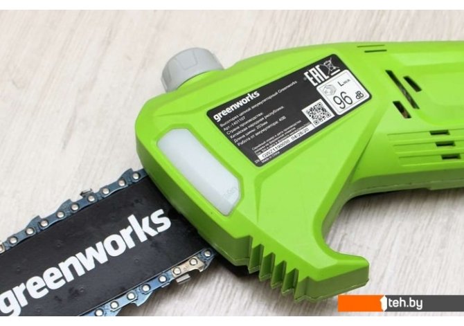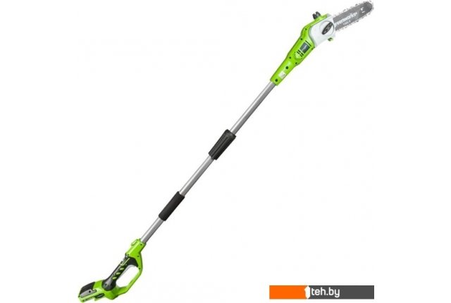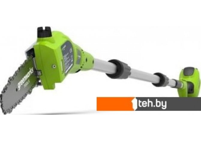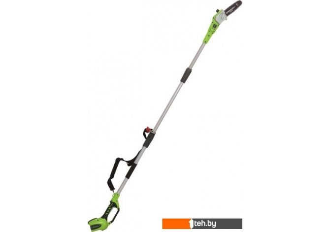 | Информация | Высоторез (сучкорез) аккумуляторный Greenworks серии 40 вольт (модель G40PSF) с легкостью справиться с обрезкой ветвей и сучьев на высоте до 4-х метров. Основное преимущество этой модели - 3-х секционная штанга, максимальная длина которой - 203 см. Высоторез оснащен 20 см. шиной из кремнистой стали и цепью производства компании Oregon. Довольно лёгкий вес (всего 4,5 кг.) для устройств этого класса и назначения, а также низкий уровень шума и вибрации. Удобство использования обеспечено эргономичной ручкой с упором для предплечья. Масляный бачок для смазки цепи с прозрачным корпусом для удобства просмотра уровня масла. Долгое автономное время работы (прим. до 100 срезов от 4 А/ч батареи) и отсутствие необходимости использовать бензин. Экологически безопасный продукт как для вашего здоровья, так и для окружающей среды. Не требует обслуживания, замены свечей и т.п. Есть предохранитель от случайного включения, а для долговечной работы двигатель имеет защиту от перегрузки. Высоторез-сучкорез работает от аккумуляторной батареи G-MAX 40V, которую можно использовать с другими устройствами линейки 40V (на текущий момент 15+ устройств). К преимуществу этого телескопического кустореза-высотореза можно отнести отсутствие необходимости использовать высокие садовые лестницы. |