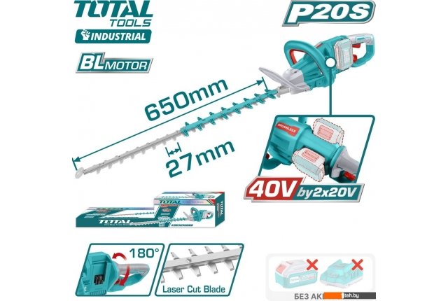 Фотографии, описание и технические характеристики модели кустороеза Total THTLI40028 (без АКБ) взяты из открытых источников, официального сайта производителя или представительства Total в Республике Беларусь.
