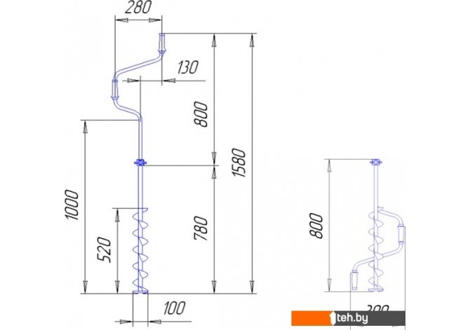 | Информация | Основное и единственное отличие двуручных ледобуров от классических – верхняя рукоятка ледобура смещена относительно оси ледобура на 130 мм, а нижняя на 150 мм. Такое расположение рукояток позволяет вращать ледобур одновременно двумя руками, тем самым, увеличивая скорость бурения лунок во льду. Кроме того, существенно уменьшаются габариты ледобура в транспортном положении. По всем остальным характеристикам двуручные ледобуры полностью соответствуют классическим. |