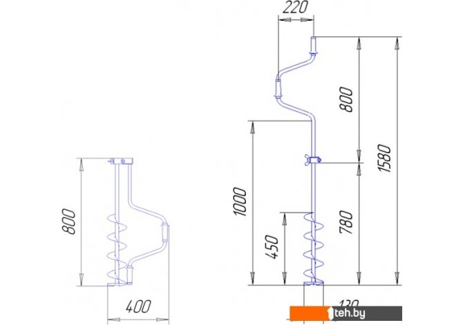 | Информация | Классический ледобур, верхняя ручка совпадает с осью ледобура. При складывании в транспортном положении рукоятка и шнек имеют одинаковую длину, поэтому ледобур удобен при транспортировке. |