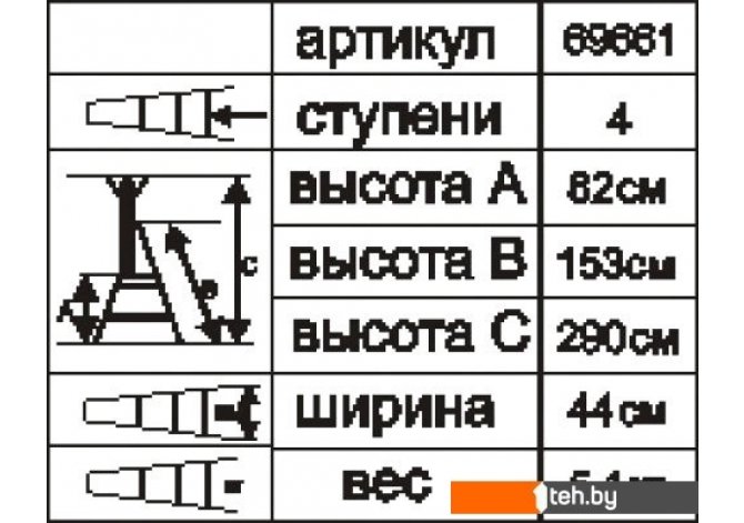 Если хотите купить стремянка Энкор 69661 (5 ступени) то следует уточнить все параметры и габариты модели перед покупкой. Представленые характеристики на сайте 1teh.by могут отличаться от действительных или указанных производителем. Описание, фото товара и технические характеристики представлены для справки.
