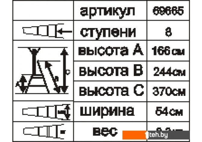 Если хотите купить стремянка Энкор 69665 (8 ступеней) то следует уточнить все параметры и габариты модели перед покупкой. Представленые характеристики на сайте 1teh.by могут отличаться от действительных или указанных производителем. Описание, фото товара и технические характеристики представлены для справки.