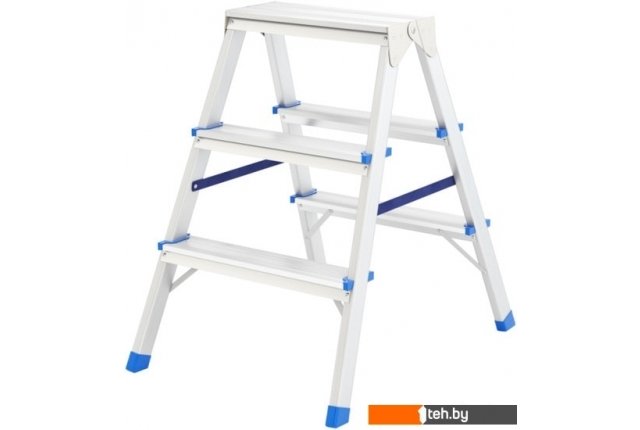 | Информация | Легкие и прочные двусторонние стремянки выдерживают увеличенный вес до 150 кг, имеют рифленые ступени и удобную широкую площадку. Благодаря пластиковым заглушкам не скользят и не повреждают напольное покрытие. Идеальны для работы одного или двух человек одновременно. |