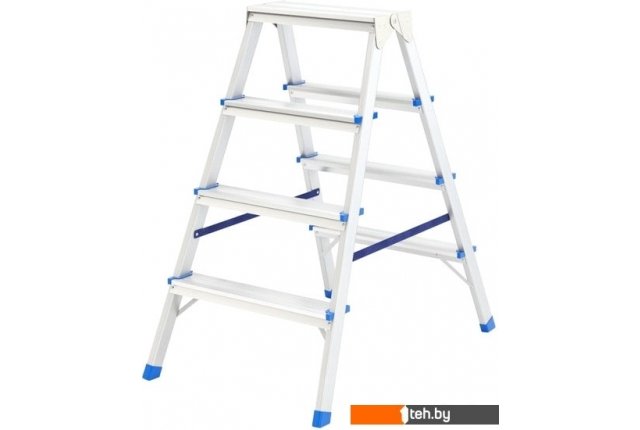 | Информация | Легкие и прочные двусторонние стремянки выдерживают увеличенный вес до 150 кг, имеют рифленые ступени и удобную широкую площадку. Благодаря пластиковым заглушкам не скользят и не повреждают напольное покрытие. Идеальны для работы одного или двух человек одновременно. |