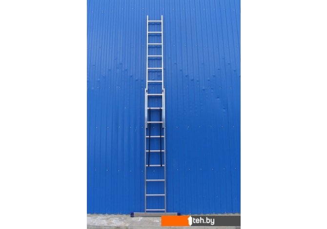 | Информация | Это лестница, которая может выполнять функции лестницы-стремянки и приставной лестницы. Преимущество двухсекционной лестницы относительно односекционной - это меньшие габариты при одинаковой досягаемой высоте, возможность использовать лестницу как стремянку, отсутствие необходимости в вертикальной опоре, регулируемая высота подъема за счет своей телескопической конструкции, наличие стабилизатора увеличенной ширины для более высокой устойчивости. |