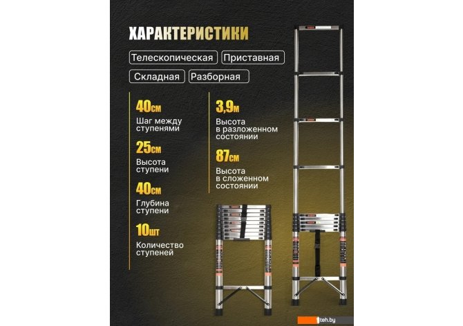 | Информация | -Ключевые характеристики Телескопическая разборная лестница предназначена для бытового использования и выполнена из нержавеющей стали. Одна секция с 10 ступенями обеспечивает регулировку высоты от 870 до 3900 мм, что позволяет легко адаптировать изделие для различных задач дома или на даче. -Преимущества и отличия Главными достоинствами являются компактность в сложенном виде, высокая грузоподъемность до 150 кг и малый вес 9.1 кг, что делает лестницу удобной для хранения и транспортировки. Надежная конструкция из нержавеющей стали гарантирует прочность и долгий срок службы. -Практичность Ширина лестницы составляет 450 мм, а ступенька шириной 27 мм обеспечивает устойчивую опору для ноги. Модель оптимально подходит для работ на высоте в ограниченном пространстве, например, при замене лампочек или ремонте. -Уникальность Складная телескопическая система конструкции позволяет быстро изменять высоту и экономит место при хранении, что выделяет изделие среди стандартных лестниц для дома и дачи. Читать дальше |