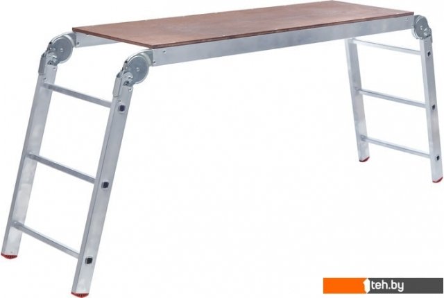 | Информация | - складные рабочие подмости из алюминиевого профиля идеально подходят для всех видов работ требующих большой площадки- настил из антисептированной фанеры- подмости легко устанавливаются и складываются в компактное положение для хранения и транспортировки- шарнирные замки регулируются одной рукой и надёжно фиксируются автоматически- ступени с рифлением для безопасного подъёма и спуска- стойки и ступени изготовлены из прессованного алюминиевого профиля- стойки с дополнительным усилием в наиболее нагруженных местах для повышенной прочности- многократная развальцовка в соединении ступеней со стойками обеспечивает высокую прочность и долговечность- надёжно закреплённые на стойках пластиковые наконечники препятствуют скольжению |