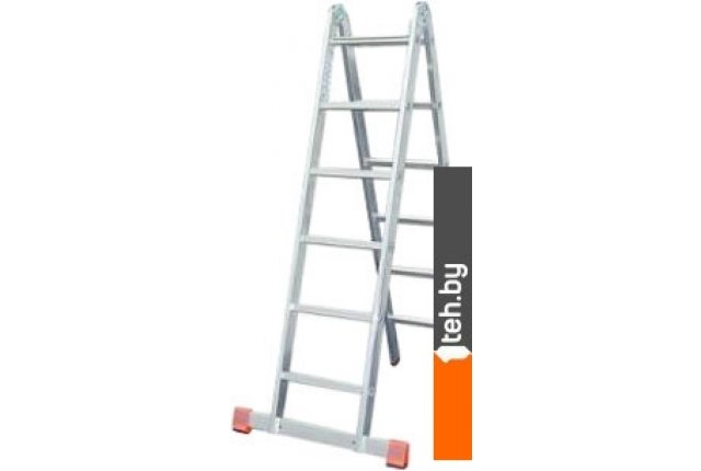| Информация | Cделана из соединенных вместе специальным шарниром секций. Такие шарнирные лестницы позволяют преобразиться из обычной приставной лестницы в Л-образную конструкцию. |