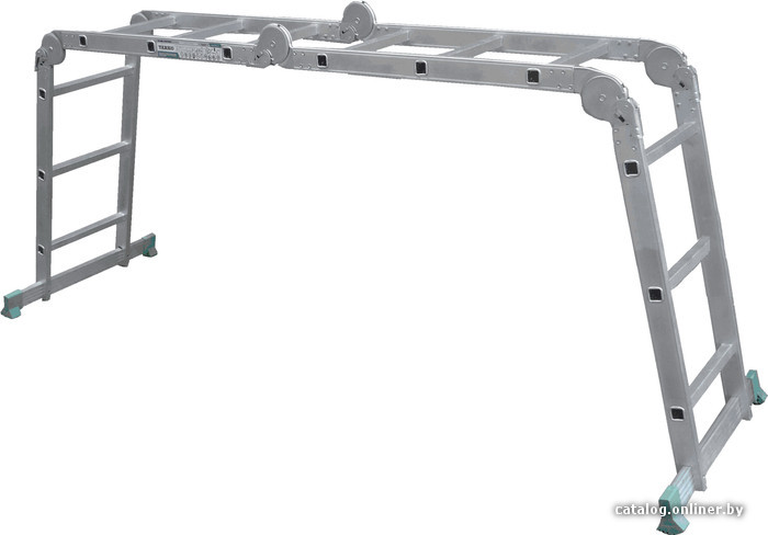 Информация | Лестницы-трансформеры сделаны из соединенных вместе специальным шарниром секций (в основном это четырехсекционные лестницы). Такие шарнирные лестницы позволяют преобразиться из обычной приставной лестницы в П- или Л-образную конструкцию. |