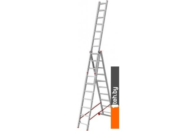 | Информация | - приставная лестница;- приставная выдвижная лестница;- стремянка;- стремянка с выдвинутой секцией;- функция лестничных пролётов.Технические преимущества:- максимальная прочность и надёжность при небольшом весе изделия;- стойки и ступени изготовлены из прессованного профиля;- многократная развальцовка в соединении ступеней со стойками обеспечивает высокую прочность и долговечность;- рифлёные ступени с шагом 260 мм для безопасного подъёма и спуска;- алюминиевые направляющие кронштейны надёжно удерживают выдвижную секцию во всех рабочих положениях;- зацепы с автоматическим фиксатором;- широкая поперечная траверса обеспечивает высокую устойчивость;- функция лестничных пролётов;- надёжно закреплённые на стойках и траверсе пластиковые наконечники препятствуют скольжению;- верхняя секция легко вынимается и устанавливается и может служитьотдельной приставной лестницей;- функция лестничных пролётов с использованием верхней съёмной секции. |