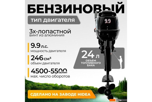 | Информация | Лодочный мотор HD9.9FHS — высокопроизводительное устройство, идеально подходящее для тех, кто ценит мощность и надежность на воде. С двухтактным бензиновым двигателем мощностью 9.9 л.с. (7.3 кВт) и рабочим объемом 246 см?, этот мотор обеспечивает отличную динамику и скорость. Мотор лодочный станет незаменимым помощником для лодок длиной до 4 м. Управление мотором осуществляется румпелем. Запуск двигателя производится вручную, а система подачи топлива работает на карбюраторе, что способствует стабильной работе. Мотор предлагает три передачи: передняя (F), нейтраль (N) и задняя (R), что обеспечивает маневренность на воде. Водяное охлаждение и винтовой способ движения способствуют надежной эксплуатации. Двухтактный лодочный мотор с внешним топливным баком объемом 24 л подходит для длительных поездок и активного отдыха. Особенности: Мощность 9.9 л.с. обеспечивает отличную динамику. Система смазки с предварительным смешиванием (бензин + масло 50:1) для повышения надежности. 3-лопастной алюминиевый винт для эффективного движения. Сухой вес 38.8 кг облегчает транспортировку и установку. Высота транца 44.7 см делает мотор совместимым с различными лодками. HD9.9FHS — надежное решение для любителей водных путешествий, способствующее получению удовольствия от активного отдыха на воде. Купить лодочный мотор можно в любое время, чтобы обеспечить комфорт и высокую производительность во время плавания. |
