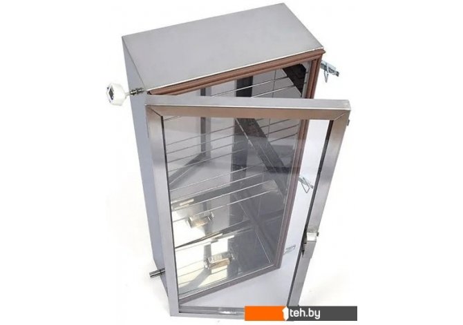 | Комплект поставки | - решетка (прутья — 8 шт.), - термометр (биметаллический), - поддон (для жира), - дверца, - шланг (для отвода и подвода дыма), - инструкция. |