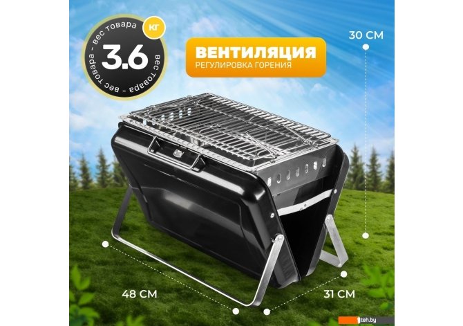 | Информация | Угольный гриль переносного типа с открытой конструкцией подходит для приготовления блюд на открытом воздухе. Решетка из хромированного металла устойчива к высоким температурам и способствует равномерному прожариванию. Стальной каркас рассчитан на длительный срок службы, а вентиляция помогает регулировать интенсивность горения углей. Черный цвет сохраняет практичность при частом использовании. Рабочая область размером 33.5?20.5 см подходит для одновременного приготовления нескольких порций. Компактные габариты — 48?31?30 см — позволяют легко транспортировать и размещать гриль даже в ограниченном пространстве. Вес в 3.6 кг делает модель удобной для переноски. Переносной гриль на углях подходит для пикников, дачи и кемпинга, сочетая функциональность, удобство и долговечность. В комплекте предусмотрен кейс для хранения и транспортировки. |