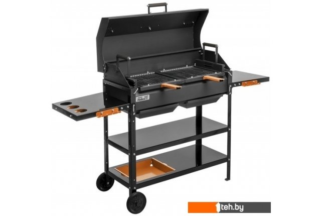| Комплект поставки | жаровня — 1 шт, ножки — 4 шт, зольник — 2 шт, опора зольника — 3 шт, столик с подстаканниками — 1 шт, опорная планка — 1 шт, держатель инструментов малый — 2 шт, кронштейн столика — 4 шт, прокладка — 4 шт, лоток — 1 шт, полка — 1 шт, держатель инструментов — 1 шт, кронштейн крышки — 2 шт, панель крышки — 1 шт, крышка-гриль — 1 шт, ручка крышки — 1 шт, ручка мангала — 1 шт, колесо — 2 шт, ось колеса — 2 шт, колпачок — 2 шт, столик сплошной — 1 шт, скоба угольного лифта — 1 шт, угольный лифт — 1 шт, рамка решетки — 2 шт, уголок решетки — 4 шт, пруток решетки — 30 шт, ручка лифта — 2 шт, сполка сплошная — 1 шт, ручка решетки — 2 шт. |
