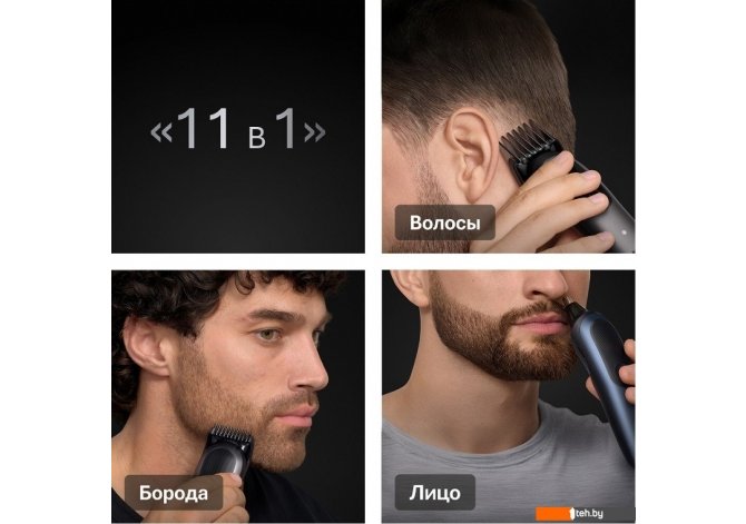 | Насадки | гребни, точный триммер, для носа и ушей, бритва |