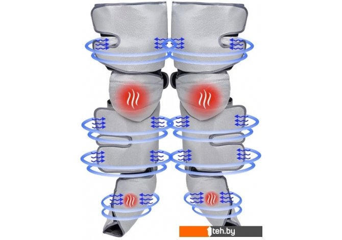 | Информация | Профессиональный массажер для комплексной прессотерапии и лимфодренажа с дополнительной функцией подогрева. Лимфодренажный массаж избавляет от мышечных зажимов и усталости, восстанавливает циркуляцию венозной крови и отток лимфы, снижает риск застоя жидкости в суставах. Функция прогревания дополнительно стимулирует кровообращения. Мощный компрессор попеременно или одновременно нагнетает воздух в воздушных камерах манжет по всей длине ноги, выполняя лимфодренажный массаж стоп, икр и бёдер. В результате комбинированного давления на икры, стопы и бедра исчезают подкожные жировые отложения на ногах, снимается усталость, стенки сосудов приходят в тонус, что предотвращает варикозное расширение вен. Вы с легкостью можете выбрать один из трех режимов работы массажера (компрессия, разминание, шиацу) и один из трех уровней интенсивности компрессионного массажа. Функция подогрева в области коленей и стоп предназначена для дополнительного стимулирования кровообращения. Вы с легкостью можете выбрать одну из трех температур воздействия: 40 ?; 45 ?; 50 ?. Массажер имеет стильный, компактный и интуитивно понятный пульт управления с дисплеем, который сделает процедуру массажа максимально комфортной. На дисплее схематично отображаются участки тела, на которых происходит воздействие. Отличительной особенностью является большая длина манжет, позволяющая провести комплексную прессотерапию и лимфодренаж в области бедер, икроножных мышц, лодыжек и стоп одновременно. Благодаря липучкам на манжетах достигается плотное обертывание и прилегание. Сеанс массажа продлен до 20 мин. По истечению 20 минут массажер автоматически отключается. ДОСТИГАЕМЫЙ ЭФЕКТ: Стимулирует движение жидкости в организме Нормализует отток венозной крови и лимфы Улучшает циркуляцию крови в венах путем восстановления функции вен Ускоряет кровообращение, уменьшает тяжесть и усталость ног Предотвращает варикозное расширение вен и образование сосудистых сеточек Снимает мышечное напряжение Укрепляет иммунитет и улучшает состояние внутренних органов |