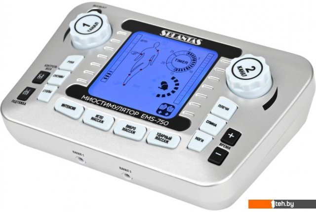 | Информация | - Многофункциональный массажер–миостимулятор — это универсальный инновационный портативный массажер для тела, использующий метод электростимуляции, идеально продуманный для удобного использования. - Преимущества EMS (ЭМС) миостимулятора: - обширный набор аксессуаров в комплекте — тапочки, пояс, налокотник/наколенник, 4 пары электродов (+2 запасных); - позволяют наиболее эффективно проработать и простимулировать основные массажные зоны на теле — спина, ноги, плечи, шея, живот; - через тапочки с электродами оказывается активное воздействие на область стопы и икр. Такой массаж стимулирует кровообращение, помогает снять тяжесть и усталость, обладает лимфодренажным эффектом; - налокотник/наколенник с электродами точечно стимулирует суставы рук или ног, помогая снять напряжение и повысить их подвижность; - пояс с электродами применяется на области живота, для проработки мышц пресса. Такой вид массажа способствует похудению и поддержанию формы в области талии; - самоклеящиеся электроды (8 шт. для одновременного применения) можно применять на любой части тела для осуществления как общего массажа области, так и более глубокой проработки определенных мышц; - совмещение 2–х методик TENS и EMS стимуляция. - В миостимуляторе предусмотрено 4 вида массажа, 2 программы массажа, 20 уровней интенсивности и выбор одной из 6 зон массажа, что позволяет установить именно то воздействие, которое необходимо Вам с учетом Ваших потребностей. - 2 независимых канала позволят использовать максимальное количество электродов одновременно в различных конфигурациях с дополнительными аксессуарами (пояс, налокотник/наколенник, тапочки), либо использовать на двух пользователях одновременно. При этом каждый из пользователей может выбрать, что использовать один аксессуар, либо 4 электрода и установить для себя отдельно и режим массажа, и его интенсивность. - Для максимального удобства использования в электростимуляторе предусмотрен большой и четкий ЖК–дисплей с подсветкой, обеспечивающий интуитивное и понятное управление, возможность установки времени массажа и функция энергосбережения. - Миостимулятор работает от сети 220В либо от батареек 3?АА (в комплект не входят). Это в сочетании с компактным размером дает возможность использовать массажер в любом месте и в любое время, когда Вам это необходимо. |