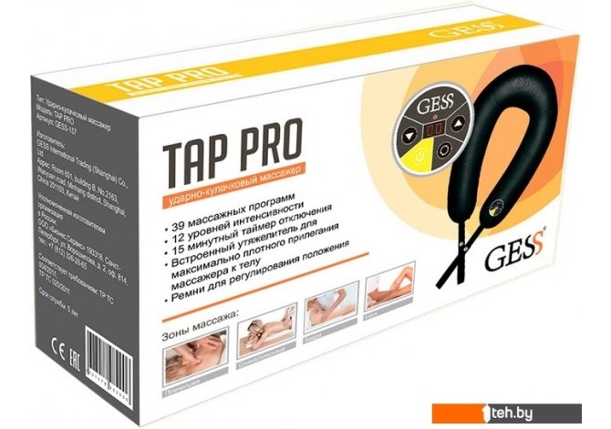 | Информация | Ударно-кулачковый массажер, имеет удобную форму подковы для плотного прилегания к телу. Один из самых мощных массажеров в линейке GESS. Массажный механизм имитирует похлопывающие и постукивающие движения массажиста. Tap Pro можно использовать большой семьей – 39-автоматических программ и 12 уровней интенсивности по достоинству оценит каждый. Большой выбор зон массажа – шея и плечи, спина, поясница, бедра, икры, ягодицы позволит проработать нужную для вас группу мышц.- Ремень крепления (массажер не нужно держать руками во время использования)- Простое управление- Отображение оставшегося времени массажа на дисплее- Автоматическое отключение через 15 минут работыВ отличие от многих массажеров, в Tap Pro можно настроить комфортную для вас интенсивность и выбрать подходящий режим. Именно большой выбор массажных программ выделяет Tap Pro от стандартный ударно-кулачковых массажеров. |