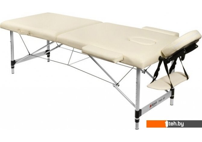 | Информация | Складной 2-ух секционный переносной массажный стол Alpin TMA-60 CREAM изготовлен с использованием только самых высококачественных компонентов. Благодаря применению алюминия в конструкции рамы вес стола существенно облегчен и составляет 12.5 кг. Складывается в форму чемодана и удобен для транспортировки. Стол возможно использовать для косметологических и SPA процедур, а также массажа. В качестве наполнителя используется мягкий поролон толщиной 5.1 см. Материал обивки – поливинилхлорид. Высота стола регулируется в 8-ми положениях в диапазоне от 59 до 80 см. Предусмотрены отверстие для лица, заглушка и подлокотники. |