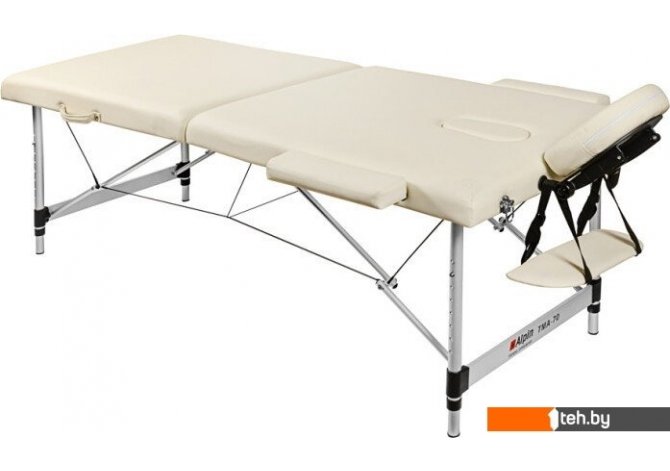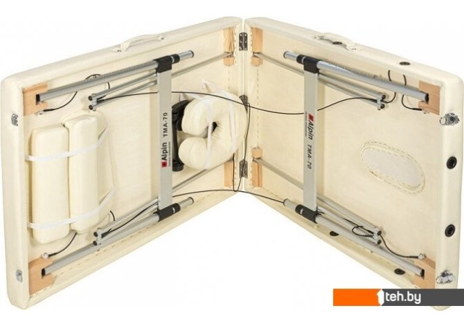 | Информация | Складной 2-ух секционный переносной массажный стол Alpin TMA-70 CREAM изготовлен с использованием только самых высококачественных компонентов. Благодаря применению алюминия в конструкции рамы вес стола существенно облегчен и составляет 13.5 кг. Складывается в форму чемодана и удобен для транспортировки. Стол возможно использовать для косметологических и SPA процедур, а также массажа. В качестве наполнителя используется мягкий поролон толщиной 5.1 см. Материал обивки – поливинилхлорид. Высота стола регулируется в 8-ми положениях в диапазоне от 59 до 80 см. Предусмотрены отверстие для лица, заглушка и подлокотники. |