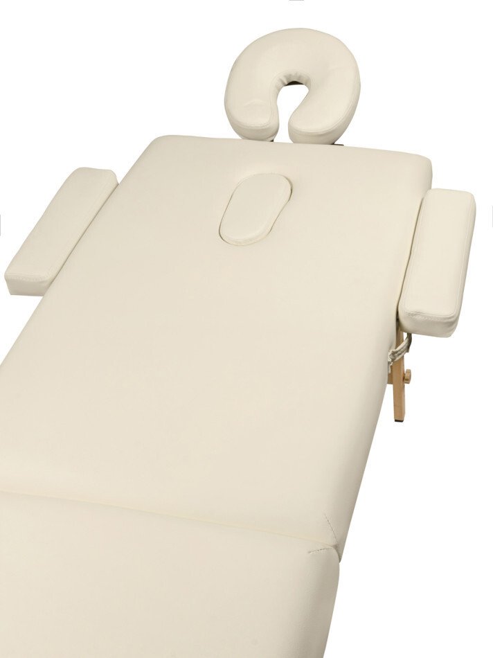 Информация | Складной 2-ух секционный переносной массажный стол Alpin TMW-70 Cream изготовлен с использованием только самых высококачественных компонентов. Благодаря применению дерева в конструкции рамы вес стола существенно облегчен и составляет 14.5 кг. Складывается в форму чемодана и удобен для транспортировки. Стол возможно использовать для косметологических и SPA процедур, а также массажа. В качестве наполнителя используется мягкий поролон толщиной 5.1 см. Материал обивки – поливинилхлорид. Высота стола регулируется в 6-ти положениях в диапазоне от 61 до 83 см. Предусмотрены отверстие для лица, заглушка и подлокотники. |