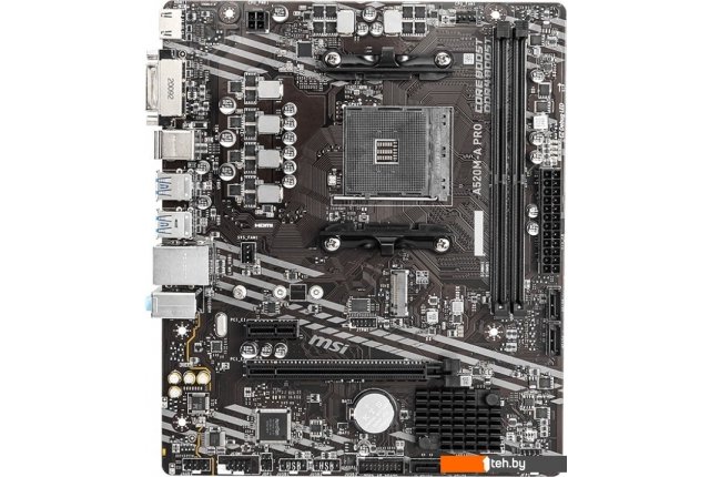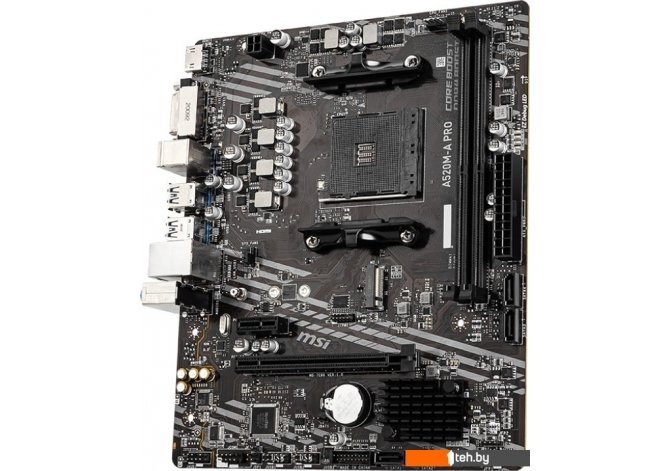 Фотографии, описание и технические характеристики модели материнской платы для компьютера MSI A520M-A PRO взяты из открытых источников, официального сайта производителя или представительства MSI в Республике Беларусь.