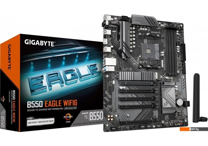 Фотографии, описание и технические характеристики модели материнской платы для компьютера Gigabyte B550 Eagle WiFi6 взяты из открытых источников, официального сайта производителя или представительства Gigabyte в Республике Беларусь.