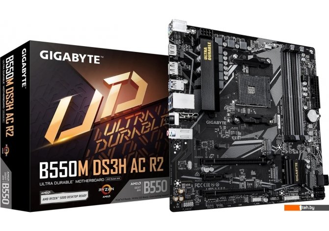 Фотографии, описание и технические характеристики модели материнской платы для компьютера Gigabyte B550M DS3H AC R2 взяты из открытых источников, официального сайта производителя или представительства Gigabyte в Республике Беларусь.