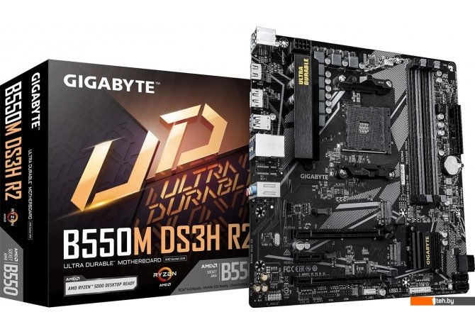 Фотографии, описание и технические характеристики модели материнской платы для компьютера Gigabyte B550M DS3H R2 взяты из открытых источников, официального сайта производителя или представительства Gigabyte в Республике Беларусь.